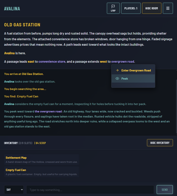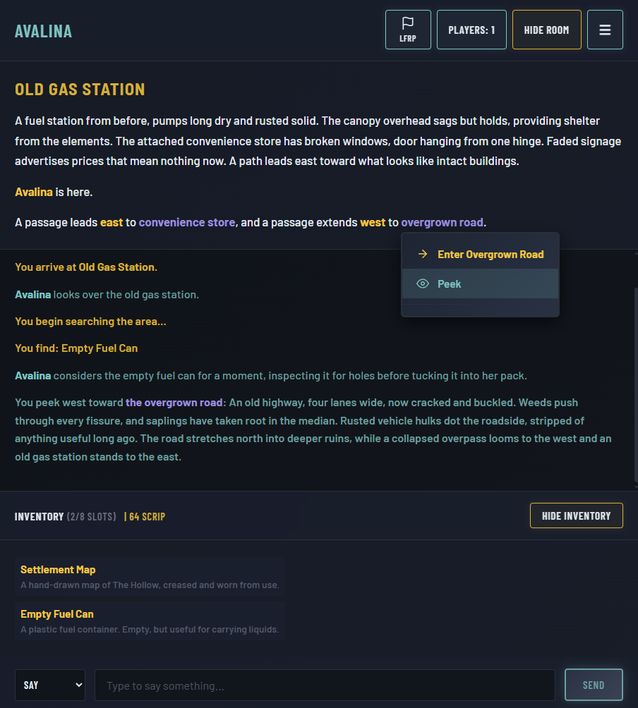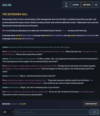 You play by moving through the game world and interacting with other players and NPCs by describing what your character says and does.